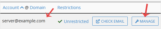 3. Scroll down to the Account @ domain section. You should see the email account listed there.